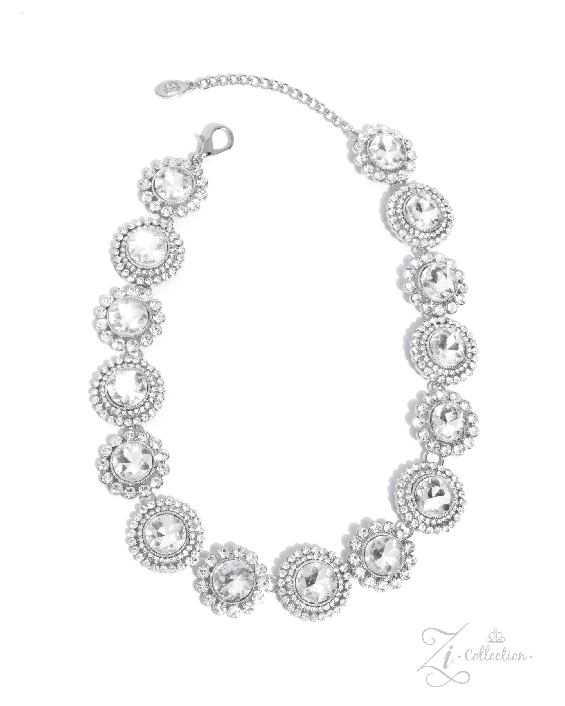 Classic white rhinestones in various dimensions create majestic petals that encircle and bloom from spellbinding, oversized white gem centers. Gradually differentiated in layers and impact, the twinkling floral frames sparkle and glitter below the collar as they delicately link into a fabulous floral statement piece. Features an adjustable clasp closure.