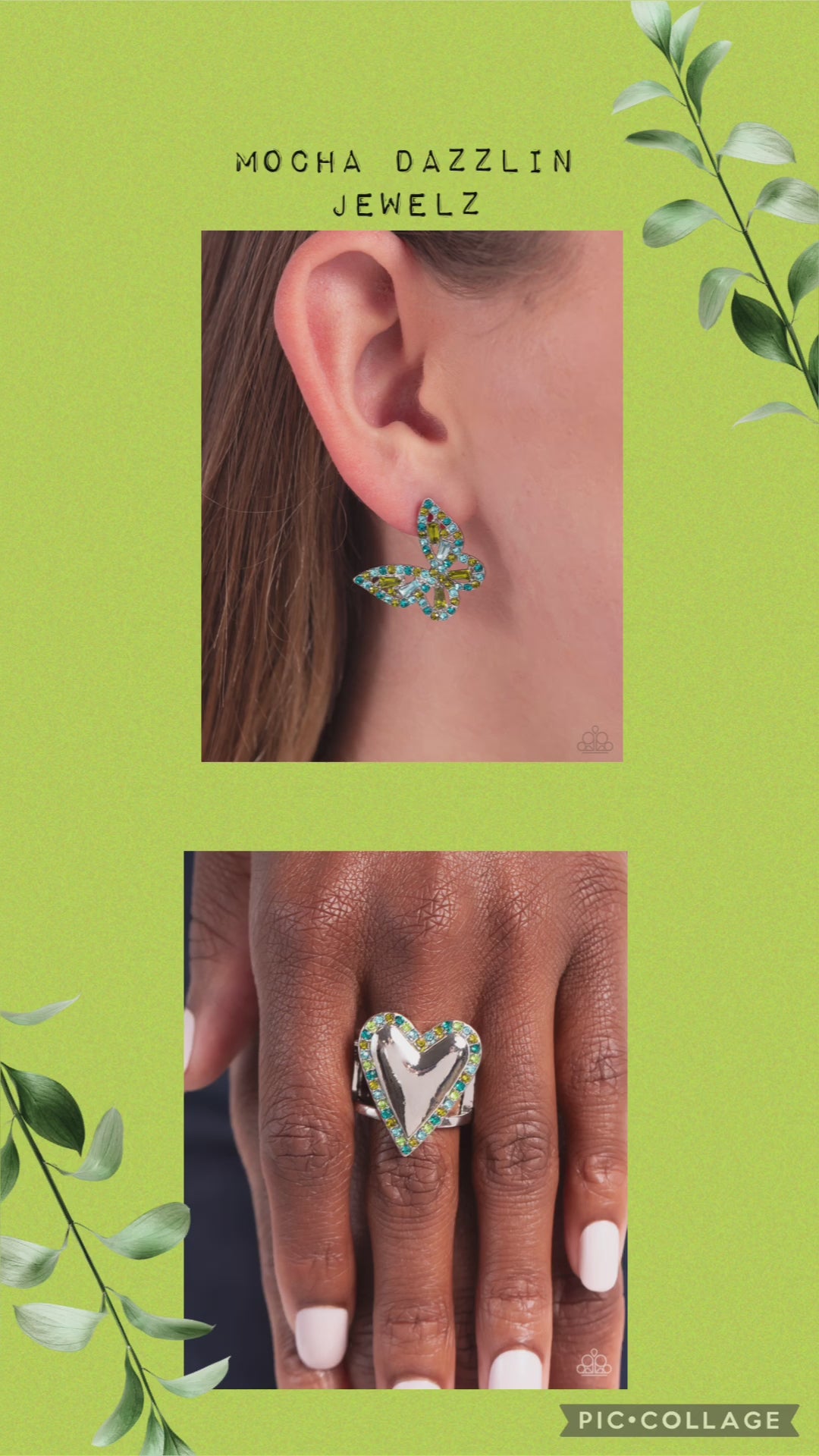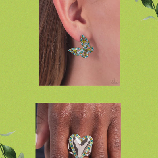 Tilted Takeoff - Green Earrings and Smitten Shimmer - Green Ring Set